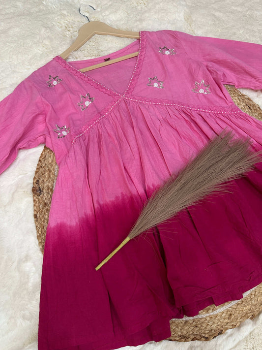 Pink tie and die kurti