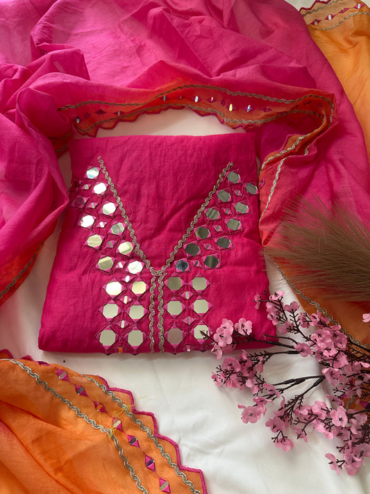 Unstitched gota patti mul cotton suit set