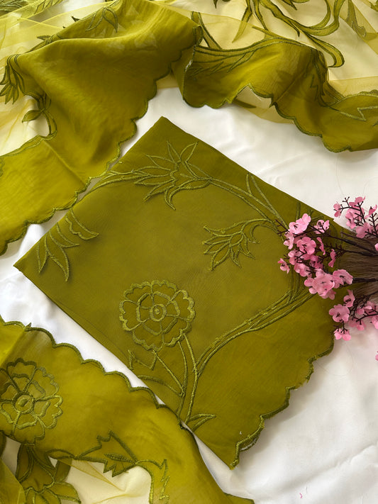 Green Mul Cotton Unstitched Suit Set