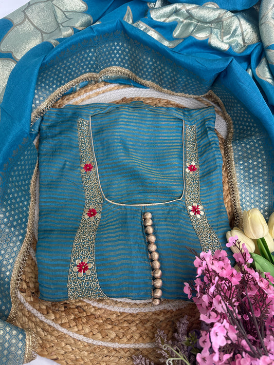 Blue Shimmer Tissue Unstitched Suit Set with Rich Banarasi Woven Dupatta